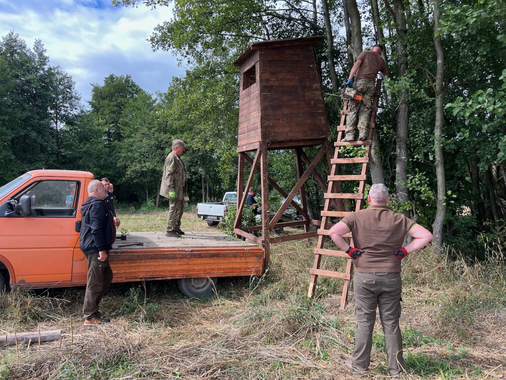 Rolnicy zakończyli już żniwa, a wraz z nimi dobiegła końca pierwsza tura szacowania i wypłat za szkody łowieckie w zbożach. Nie oznacza to jednak odpoczynku dla myśliwych – wciąż pełnimy dyżury przy polach kukurydzy i grodzimy te najbardziej narażone na zniszczenia, głównie przez dziki. Równocześnie stawiamy nowe urządzenia łowieckie – ambony oraz przenosimy zwyżki, aby polowania były łatwiejsze i bezpieczniejsze, a szkody skutecznie ograniczane.