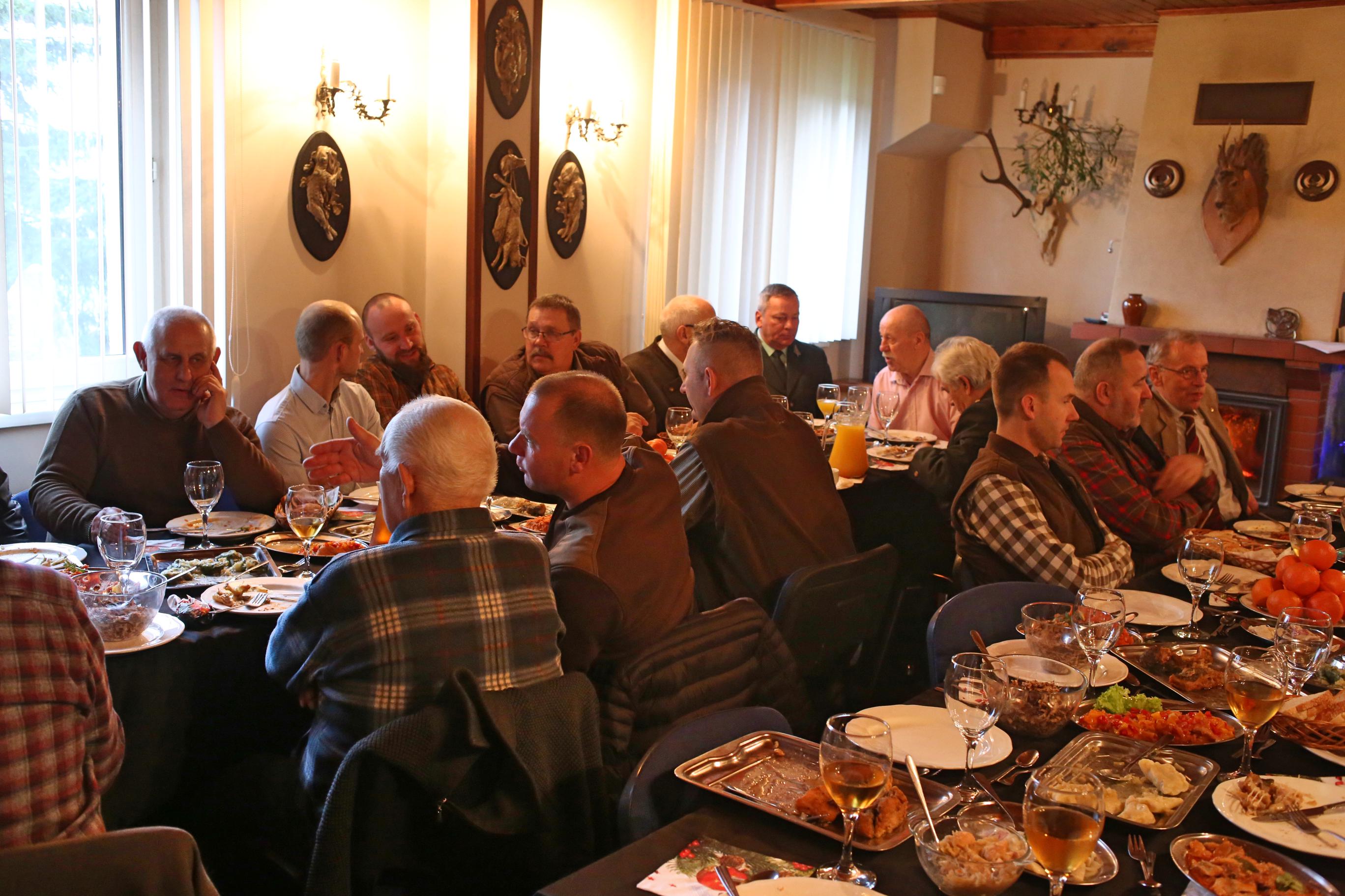 W dniu 21.12.2019 przy cieple ognia z kominka, śpiewie kolęd i wspaniałej atmosferze odbyło się w naszym domku łowieckim spotkanie wigilijne. Zgodnie z tradycją nasza brać, dzieląc się opłatkiem złożyła sobie życzenia. Na stole nie zabrakło tradycyjnych wilijnych potraw. Przedstawiamy kilka zdjęć z tej uroczystości.